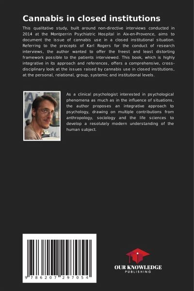 This qualitative study, built around non-directive interviews conducted in 2014 at the Montperrin Psychiatric Hospital in Aix-en-Provence, aims to document the issue of cannabis use in a closed institutional situation. Referring to the precepts of Karl Rogers for the conduct of research interviews, the author wanted to offer the freest and least distorting framework possible to the patients interviewed. This book, which is highly integrative in its approach and references, offers a comprehensive, cross-disciplinary look at the issues raised by cannabis use in closed institutions, at the personal, relational, group, systemic and institutional levels.