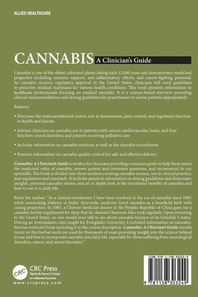 Cannabis is one of the oldest cultivated plants dating back 12,000 years and demonstrates medicinal properties including immune support, anti-inflammatory effects, and cancer-fighting potential. As cannabis receives regulatory approval in the United States, clinicians will need guidelines to prescribe medical marijuana for various health conditions. This book presents information to healthcare professionals focusing on medical cannabis. It is a science-based overview providing clinical recommendations and dosing guidelines for practitioners to advise patients appropriately. Features: Discusses the endocannabinoid system role in homeostasis, pain control, and regulatory function in health and disease Advises clinicians on cannabis use in patients with cancer; cardiovascular, brain, and liver function; mood disorders; and patients receiving palliative care Includes information on cannabis nutrition as well as the cannabis microbiome Features information on cannabis quality control for safe and effective delivery Cannabis: A Clinician's Guide is written for clinicians providing a resource guide to help them assess the medicinal value of cannabis, answer patient and consumer questions, and recommend its use optimally. The book is divided into three sections covering cannabis science, use in clinical practice, and regulations and standards. It includes practical information on dosing guidelines and dispensary insights, personal cannabis stories, and an in depth look at the nutritional benefits of cannabis and how to use it in daily life. From the Author: "As a clinical nutritionist, I have been involved in the use of cannabis since 1981 while researching diabetes in India. Ayurvedic medicine listed cannabis as a beneficial herb with curing properties. In 1983, a Chinese medicine doctor in the Peoples Republic of China gave me a cannabis herbal supplement for sleep that he claimed Chairman Mao took regularly. Upon returning to the United States, no one would even talk to me about cannabis because of its Schedule I status. During an Antioxidants class taught for Everglades University, I included information on cannabis, but was restricted from including it in the course description. Cannabis: A Clinician's Guide unveils deceit on this herbal medicine used for thousands of years providing insight into the science behind its use and how to incorporate cannabis into daily life, especially for those suffering from neurological disorders, cancer, and mood disorders."