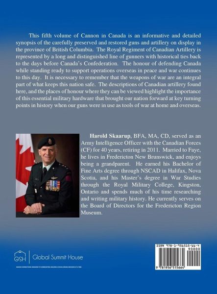 This fifth volume of Cannon in Canada is an informative and detailed synopsis of the carefully preserved and restored guns and artillery on display in the province of British Columbia. The Royal Regiment of Canadian Artillery is represented by a long and distinguished line of gunners with historical ties back to the days before Canada's Confederation. The honour of defending Canada while standing ready to support operations overseas in peace and war continues to this day. It is necessary to remember that the weapons of war are an integral part of what keeps this nation safe. The descriptions of Canadian artillery found here, and the places of honour where they can be viewed highlight the importance of this essential military hardware that brought our nation forward at key turning points in history when our guns were in use as tools of war at home and overseas.