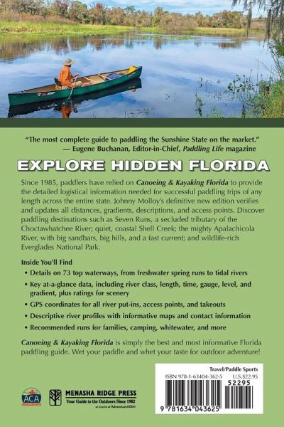 "From the exciting and beautiful runs of the Panhandle's Econfina Creek to slower floats through wildlife-rich Everglades National Park, the best way to experience the Sunshine State is by paddle! Canoeing & Kayaking Florida is the most comprehensive guide to the best of Florida's unique streams, springs, creeks, rivers, and coastal waterways. Written by acclaimed author and adventurer Johnny Molloy, the guidebook provides engaging and concise information, while offering carefully selected details vital to a successful paddling trip. For more than 35 years, Canoeing & Kayaking Florida has been…mehr