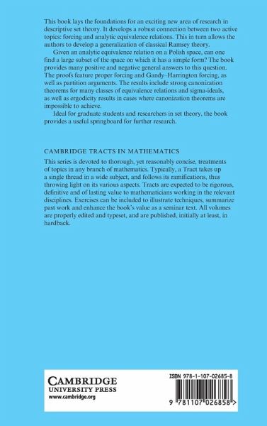 This book lays the foundations for an exciting new area of research in descriptive set theory. It develops a robust connection between two active topics: forcing and analytic equivalence relations. This in turn allows the authors to develop a generalization of classical Ramsey theory. Given an analytic equivalence relation on a Polish space, can one find a large subset of the space on which it has a simple form? The book provides many positive and negative general answers to this question. The proofs feature proper forcing and Gandy-Harrington forcing, as well as partition arguments. The results include strong canonization theorems for many classes of equivalence relations and sigma-ideals, as well as ergodicity results in cases where canonization theorems are impossible to achieve. Ideal for graduate students and researchers in set theory, the book provides a useful springboard for further research.