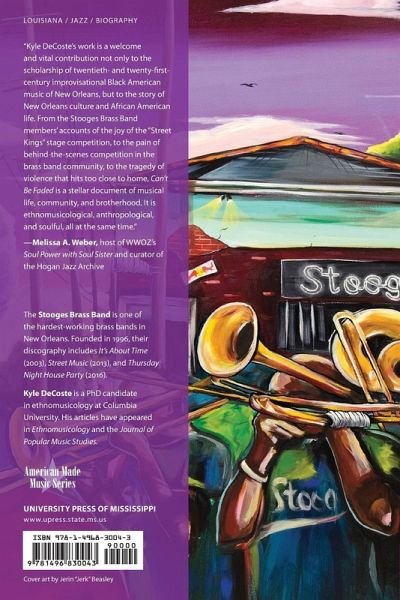 The Stooges Brass Band always had big dreams. From playing in the streets of New Orleans in the mid-1990s to playing stages the world over, they have held fast to their goal of raising brass band music and musicians to new heights--professionally and musically. In the intervening years, the band's members have become family, courted controversy, and trained a new generation of musicians, becoming one of the city's top brass bands along the way. Two decades after their founding, they have decided to tell their story. Can't Be Faded: Twenty Years in the New Orleans Brass Band Game is a collaboration between musician and ethnomusicologist Kyle DeCoste and more than a dozen members of the Stooges Brass Band, past and present. It is the culmination of five years of interviews, research, and writing. Told with humor and candor, it's as much a personal account of the Stooges' careers as it is a story of the city's musicians and, even more generally, a coming-of-age tale about black men in the United States at the turn of the twenty-first century. DeCoste and the band members take readers into the barrooms, practice rooms, studios, tour vans, and streets where the music is made and brotherhoods are shaped and strengthened. Comprised of lively firsthand accounts and honest dialogue, Can't Be Faded is a dynamic approach to collaborative research that offers a sensitive portrait of the humans behind the horns.