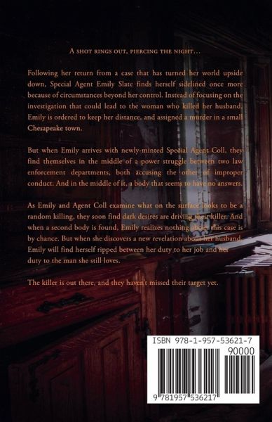 A shot rings out, piercing the night... Following her return from a case that has turned her world upside down, Special Agent Emily Slate finds herself sidelined once more because of circumstances beyond her control. Instead of focusing on the investigation that could lead to the woman who killed her husband, Emily is ordered to keep her distance, and assigned a murder in a small Chesapeake town. But when Emily arrives with newly-minted Special Agent Coll, they find themselves in the middle of a power struggle between two law enforcement departments, both accusing the other of improper conduct. And in the middle of it, a body that seems to have no answers. As Emily and Agent Coll examine what on the surface looks to be a random killing, they soon find dark desires are driving their killer. And when a second body is found, Emily realizes nothing about this case is by chance. But when she discovers a new revelation about her husband, Emily will find herself ripped between her duty to her job and her duty to the man she still loves. The killer is out there, and they haven't missed their target yet.