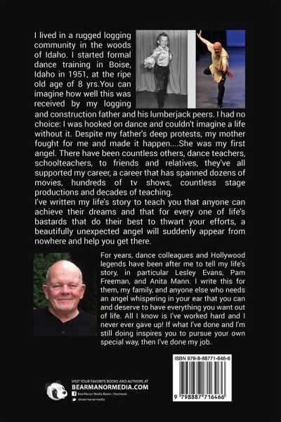 I lived in a rugged logging community in the woods of Idaho. I started formal dance training in Boise, Idaho in 1951, at the ripe old age of 8 yrs. You can imagine how well this was received by my logging and construction father and his lumberjack peers. I had no choice: I was hooked on dance and couldn't imagine a life without it. Despite my father's deep protests, my mother fought for me and made it happen....She was my first angel. There have been countless others, dance teachers, schoolteachers, to friends and relatives, they've all supported my career, a career that has spanned dozens of movies, hundreds of tv shows, countless stage productions and decades of teaching. I've written my life's story to teach you that anyone can achieve their dreams and that for every one of life's bastards that do their best to thwart your efforts, a beautifully unexpected angel will suddenly appear from nowhere and help you get there. For years, dance colleagues and Hollywood legends have been after me to tell my life's story, in particular Lesley Evans, Pam Freeman, and Anita Mann. I write this for them, my family, and anyone else who needs an angel whispering in your ear that you can and deserve to have everything you want out of life. All I know is I've worked hard and I never ever gave up! If what I've done and I'm still doing inspires you to pursue your own special way, then I've done my job.