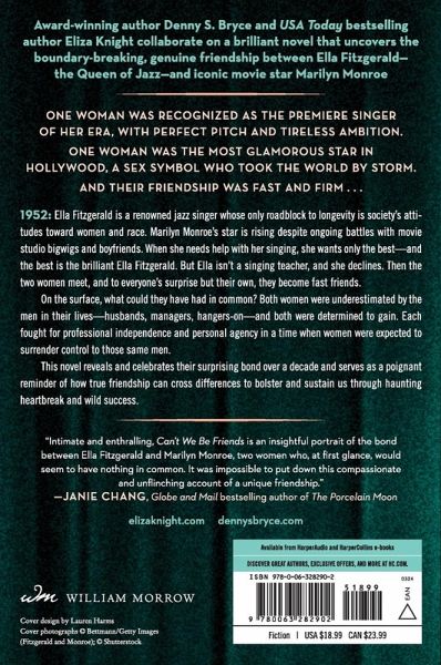 "One woman was recognized as the premiere singer of her era with perfect pitch and tireless ambition. One woman was the most glamorous star in Hollywood, a sex symbol who took the world by storm. And their friendship was fast and firm... 1952: Ella Fitzgerald is a renowned jazz singer whose only roadblock to longevity is society's attitude toward women and race. Marilyn Monroe's star is rising despite ongoing battles with movie studio bigwigs and boyfriends. When she needs help with her singing, she wants only the best-and the best is the brilliant Ella Fitzgerald. But Ella isn't a singing teacher and declines-then the two women meet, and to everyone's surprise but their own, they become fast friends. On the surface, what could they have in common? Yet each was underestimated by the men in their lives-husbands, managers, hangers-on. And both were determined to gain. Each fought for professional independence and personal agency in a time when women were expected to surrender control to those same men. This novel reveals and celebrates their surprising bond over a decade and serves as a poignant reminder of how true friendship can cross differences to bolster and sustain us through haunting heartbreak and wild success"--