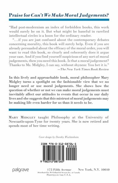 In this book, Mary Midgely turns a spotlight on the fashionable view that we no longer need or use moral judgements. She shows how the question of whether or not we can make moral judgements must inevitably affect our attitudes to the law and its institutions, but also to events that occur in our daily lives.