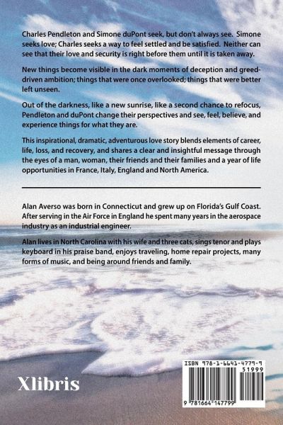 Charles Pendleton and Simone duPont seek, but don't always see. Simone seeks love; Charles seeks a way to feel settled and be satisfied. Neither can see that their love and security is right before them until it is taken away. New things become visible in the dark moments of deception and greed-driven ambition; things that were once overlooked; things that were better left unseen. Out of the darkness, like a new sunrise, like a second chance to refocus, Pendleton and duPont change their perspectives and see, feel, believe, and experience things for what they are. This inspirational, dramatic, adventurous love story blends elements of career, life, loss, and recovery, and shares a clear and insightful message through the eyes of a man, woman, their friends and their families and a year of life opportunities in France, Italy, England and North America.