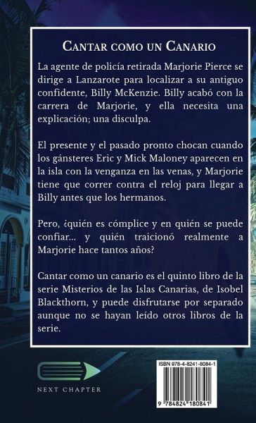 La agente de policía retirada Marjorie Pierce se dirige a Lanzarote para localizar a su antiguo confidente, Billy McKenzie. Billy acabó con la carrera de Marjorie, y ella necesita una explicación; una disculpa. El presente y el pasado pronto chocan cuando los gánsteres Eric y Mick Maloney aparecen en la isla con la venganza en las venas, y Marjorie tiene que correr contra el reloj para llegar a Billy antes que los hermanos. Pero, ¿quién es cómplice y en quién se puede confiar... y quién traicionó realmente a Marjorie hace tantos años? Cantar como un canario es el quinto libro de la serie Misterios de las Islas Canarias, de Isobel Blackthorn, y puede disfrutarse por separado aunque no se hayan leído otros libros de la serie.