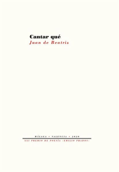 Tan sólo en éxtasis se aprenden las más altas lecciones: no hizo la voz al canto, ¿al canto? Sí, al canto ojos en blanco que en verdad es puro trino temblando a la redonda de las lumbres. Cantar fue un incendiarse hasta la rosa, ceniza desmandada sin porqué. (Visión de la Sibila) JUAN DE BEATRIZ (Lorca, 1994) es graduado en Filología Hispánica (UMU) con Máster en Estudios Literarios y Teatrales (UGR). Primer premio XLIV Certamen literario María Agustina (2018) y I Premio Internacional de Investigación literaria revista Crátera (2019). Este presente curso 2020-2021, disfruta de una beca artística en la Fundación Antonio Gala para jóvenes creadores, donde desarrolla un proyecto de 'tecnopoesía'. Cantar qué (XXI Premio Emilio Prados) es su primer libro de poemas.