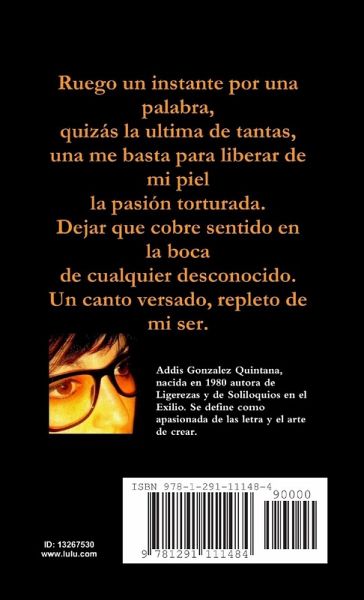 Ruego un instante por una palabra, quizás la ultima de tantas, una me basta para liberar de mi piel la pasión torturada. Dejar que cobre sentido en la boca de cualquier desconocido. Un canto versado, repleto de mi ser.