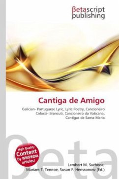 Please note that the content of this book primarily consists of articles available from Wikipedia or other free sources online. The cantiga de amigo (modern Portuguese and Galician spelling), or cantiga d''amigo (the spelling found in manuscripts of Galician-Portuguese lyric), literally a "song about a boyfriend", is a genre of medieval erotic lyric poetry, apparently rooted in a song tradition native to the northwest quadrant of the Iberian Peninsula. What mainly distinguishes the cantiga de amigo is its focus on a world of female-voiced communication. The earliest examples that survive are dated from roughly the 1220''s, and nearly all 500 were composed before 1300. Cantigas d'' amigo are found mainly in the Cancioneiro Colocci-Brancuti, now in Lisbon''s Biblioteca Nacional, and in the Cancioneiro da Vaticana, both copied in Italy at the beginning of the 16th century (possibly around 1525) at the behest of the Italian humanist Angelo Colocci. The seven songs of Martin Codax arealso contained, along with music (for all but one text), in the Pergaminho Vindel, probably a mid thirteenth century manuscript and unique in all Romance philology.