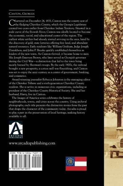 Chartered on December 24, 1833, Canton was the county seat of the fledging Cherokee County, which the Georgia Legislature created two years earlier from Cherokee Indian Territory. Situated in a wide curve of the Etowah River, Canton was ideally located to become the economic, social, and educational center of the region. The earliest white settlers had already started arriving in the area, lured by the discovery of gold, state lotteries offering free land, and abundant natural resources. Early residents like William Grisham, Judge Joseph Donaldson, and John P. Brooke quickly established themselves as leaders of the new town. As Canton thrived, it became home to men like Joseph Emerson Brown, who later served as Georgia's governor during the Civil War--a distinction that led to the town being mostly burned by Sherman's troops. By the early 1900s, the railroad brought a new prosperity, a cotton mill was flourishing, and Canton was set to enjoy the next century as a center of government, banking, and commerce.