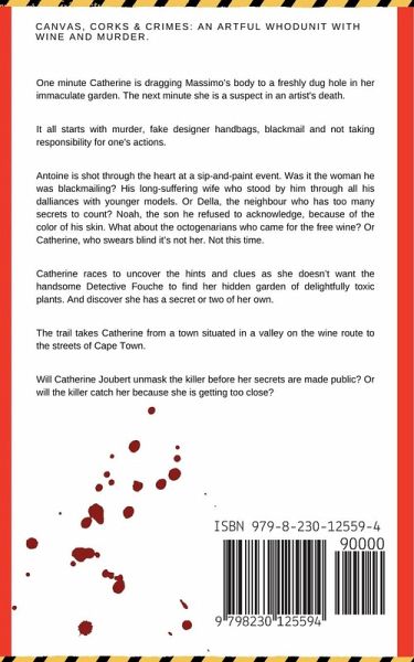 A cosy mystery set in South Africa with interesting characters. One minute Catherine Joubert is dragging Massimo's body to a freshly dug hole in her immaculate garden. The next minute she's a suspect in an artist's death. It all starts with fake designer handbags, blackmail and not taking responsibility for one's actions. Antoine is shot through the heart at a sip-and-paint event. Was it the woman he was blackmailing? His long-suffering wife who stood by him through all his dalliances with young models. The suspect list grows as Cat finds out Antoine was a right royal ass. Catherine races to uncover the clues as she doesn't want the deliciously handsome Detective Fouche to find her hidden garden of delightfully toxic plants. And discover that she has a secret or two of her own. The trail takes her from an estate for the wealthy (in a valley on the wine route) to the streets of Cape Town. Will she unmask the killer before her secrets are made public? Or will the killer catch her because she is getting too close?