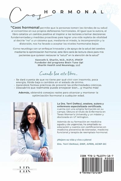 Hormone Havoc (Caos Hormonal) empodera a las personas para que tomen el control de su viaje de salud convirtiéndose en sus propios defensores hormonales. Como la autora misma, el libro cataliza un cambio positivo, inspirando a los lectores a tomar decisiones informadas y dar pasos proactivos hacia una vida de vitalidad al decir "no" a un sistema que, a través del miedo, la incomprensión y la tergiversación, nos ha llevado por el camino de la complacencia hormonal baja. Como neurólogo innovador que adopta la salud cerebral a través de la optimización hormonal, haré que este libro sea una lectura esencial para mis pacientes cuyo mayor deseo es restaurar la salud en la atención médica. Kenneth S. Sharlin, M.D., M.P.H, IFMCP Fundador, ¡The Brain Tune Up! Programa Sharlin Health and Neurology, LLC Cuando leas este libro, podrás:Darte cuenta de que no tienes que vivir con insomnio, baja energía, bajo libido o cambios de humor Descubrir formas prácticas de prevenir enfermedades crónicas Descubrir que realmente puedes envejecer bien... ¡y mucho más! Además, obtener consejos prácticos para lograr y mantener la optimización hormonal a cualquier edad.