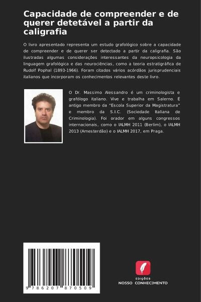 O livro apresentado representa um estudo grafológico sobre a capacidade de compreender e de querer ser detectado a partir da caligrafia. São ilustradas algumas considerações interessantes da neuropsicologia da linguagem grafológica e das neurociências, como a teoria estratigráfica de Rudolf Pophal (1893-1966). Foram citados vários acórdãos jurisprudenciais italianos que incorporam os conhecimentos relevantes deste livro.