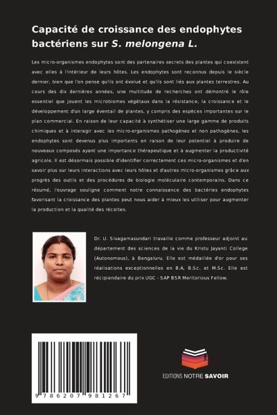 Les micro-organismes endophytes sont des partenaires secrets des plantes qui coexistent avec elles à l'intérieur de leurs hôtes. Les endophytes sont reconnus depuis le siècle dernier, bien que l'on pense qu'ils ont évolué et qu'ils sont liés aux plantes terrestres. Au cours des dix dernières années, une multitude de recherches ont démontré le rôle essentiel que jouent les microbiomes végétaux dans la résistance, la croissance et le développement d'un large éventail de plantes, y compris des espèces importantes sur le plan commercial. En raison de leur capacité à synthétiser une large gamme de produits chimiques et à interagir avec les micro-organismes pathogènes et non pathogènes, les endophytes sont devenus plus importants en raison de leur potentiel à produire de nouveaux composés ayant une importance thérapeutique et à augmenter la productivité agricole. Il est désormais possible d'identifier correctement ces micro-organismes et d'en savoir plus sur leurs interactions avec leurs hôtes et d'autres micro-organismes grâce aux progrès des outils et des procédures de biologie moléculaire contemporains. Dans ce résumé, l'ouvrage souligne comment notre connaissance des bactéries endophytes favorisant la croissance des plantes peut nous aider à mieux les utiliser pour augmenter la production et la qualité des récoltes.