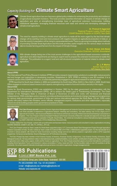Climate Smart agriculture has now become a global policy initiative for enhancing the productivity and resilience of agricultural ecosystem functions. This book (Capacity Bilding for Climate Smart Agriculture) provides essential information on impacts of climate change on agriculture and aims at strengthening knowledge base of agricultural extension functionaries, building institutional capacities, leveraging financial resources both state and central and developing strategies for climate smart agriculture. The publication is a cogent, lucid and well structured compilation of material related to climate smart agriculture.