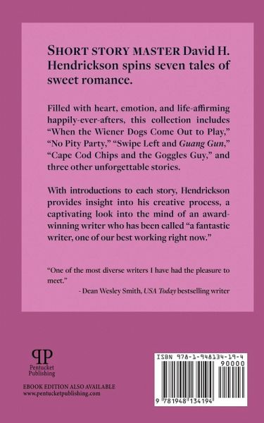 Short story master David H. Hendrickson spins seven tales of sweet romance. Filled with heart, emotion, and life-affirming happily ever afters, this collection includes "When the Wiener Dogs Come Out to Play," "No Pity Party," "Swipe Left and Guang Gun," "Cape Cod Chips and the Goggles Guy," and three other unforgettable stories. With introductions to each story, Hendrickson provides insight into his creative process, a captivating look into the mind of an award-winning writer who has been called "a fantastic writer, one of our best working right now." "David H. Hendrickson is one of my favorite writers." ---Kristine Kathryn Rusch, USA Today bestselling writer "One of the most diverse writers I have had the pleasure to meet." ---Dean Wesley Smith, USA Today bestselling writer