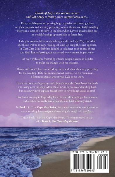 Fourth of July is around the corner, and Cape May is feeling more magical than ever... Dave and Margaret are growing huge vegetable and flower gardens on their property and are busy preparing to host Donna and Dale's wedding. However, a wrench is thrown in the plans when Dave is asked to help out at a wildlife refuge up north due to forest fires. Judy gets asked to fill in as a beach tag checker in Cape May, but what she thinks will be an easy, relaxing job ends up being the exact opposite. In West Cape May, Bob has decided to volunteer at an animal shelter and finds himself getting quite attached to one animal in particular. Liz deals with some frustrating interior design clients and decides to make big changes with her business. Donna still doesn't have her wedding dress, and while she's busy preparing for the wedding, Dale has an unexpected customer at his restaurant-a famous magician who invites Dale to his show. Sarah has been hosting classes and discussions at the Book Nook but finds it is taking over the shop. Meanwhile, Chris buys a second birding boat, but his newly hired captain doesn't seem to have things under control. Lisa decides to stay in Cape May for a bit, and after finding a house rental, realizes she's not really sure where she and Nick officially stand. In Book 14 of the Cape May Series, feel the excitement as new adventures and a wedding have everyone discovering the magic of Cape May. This is Book 14 in the Cape May Series. It's recommended to start with Book 1, The Cape May Garden.