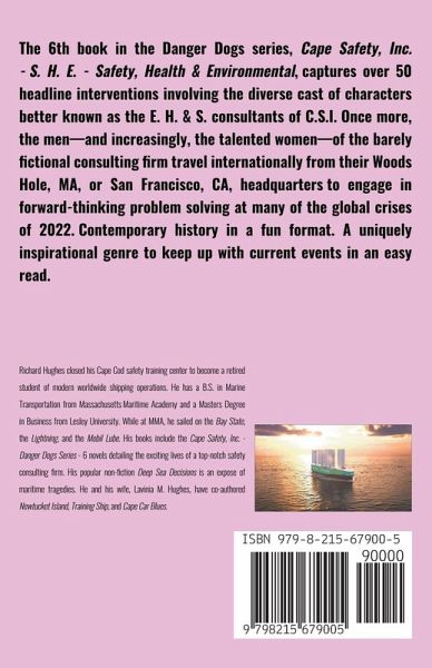 The 6th book in the series, Cape Safety, Inc. - S. H. E. - Safety, Health & Environmental, captures over 50 headline interventions involving the diverse cast of characters better known as the E. H. & S. consultants of C.S.I. Once more, the men—and increasingly, the talented women—of the barely fictional consulting firm travel internationally from their Woods Hole, MA, or San Francisco, CA, headquarters to engage in forward-thinking problem solving at many of the global crises of 2022. Contemporary history in a fun format. A uniquely inspirational genre to keep up with current events in an easy read.