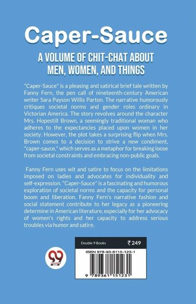 "Caper-Sauce" is a pleasing and satirical brief tale written by Fanny Fern, the pen call of nineteenth-century American writer Sara Payson Willis Parton. The narrative humorously critiques societal norms and gender roles ordinary in Victorian America. The story revolves around the character Mrs. Hopestill Brown, a seemingly traditional woman who adheres to the expectancies placed upon women in her society. However, the plot takes a surprising flip when Mrs. Brown comes to a decision to strive a new condiment, "caper-sauce," which serves as a metaphor for breaking loose from societal constraints and embracing non-public goals. As Mrs. Brown experiments with the unconventional flavor of caper-sauce, she undergoes a change, tough the traditional expectancies of her role as a dutiful spouse. Fanny Fern uses wit and satire to focus on the limitations imposed on ladies and advocates for individuality and self-expression. "Caper-Sauce" is a fascinating and humorous exploration of societal norms and the capacity for personal boom and liberation. Fanny Fern's narrative fashion and social statement contribute to her legacy as a pioneering determine in American literature, especially for her advocacy of women's rights and her capacity to address serious troubles via humor and satire.