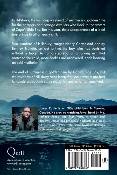 In Hillsbury, the last long weekend of summer is a golden time for the campers and cottage dwellers who flock to the waters of Cape's Side Bay. But this year, the disappearance of a local boy brings to all an early chill. Two wardens of Hillsbury, ranger Henry Carter and deputy Bentley Trundle, set out to find the boy who has vanished without a trace. As rumors spread of a lurking evil that snatched the child, more bodies are uncovered, each bearing an odd mutilation. Eyes sewn closed, ears chopped off, mouth stitched shut . . . each thread made from a material not found on the periodic table. The end of summer is a golden time by Cape's Side Bay, but the residents of Hillsbury soon learn that some waters are best left undisturbed, and some mysteries are better left unsolved.