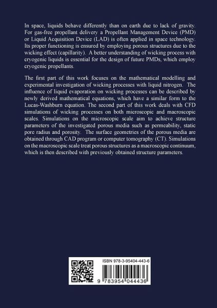 In space, liquids behave differently than on earth due to lack of gravity. For gas-free propellant delivery a Propellant Management Device (PMD) or Liquid Acquisition Device (LAD) is often applied in space technology. Its proper functioning is ensured by employing porous structures due to the wicking effect (capillarity). A better understanding of wicking process with cryogenic liquids is essential for the design of future PMDs, which employ cryogenic propellants. The first part of this work focuses on the mathematical modelling and experimental investigation of wicking processes with liquid nitrogen. The influence of liquid evaporation on wicking processes can be described by newly derived mathematical equations, which have a similar form to the Lucas-Washburn equation. The second part of this work deals with CFD simulations of wicking processes on both microscopic and macroscopic scales. Simulations on the microscopic scale aim to achieve structure parameters of the investigated porous media such as permeability, static pore radius and porosity. The surface geometries of the porous media are obtained through CAD program or computer tomography (CT). Simulations on the macroscopic scale treat porous structures as a macroscopic continuum, which is then described with previously obtained structure parameters.