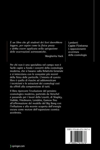 Si ripercorre la storia della cosmologia moderna, dal XVIII secolo fino alle più recenti scoperte (l'opera è aggiornata fino alla fine 2010). La cosmologia fa uso di concetti complessi, che vengono spesso fraintesi, o che non vengono compresi del tutto, da chi non è specialista del campo. Lo scopo del volume è di trattare esaustivamente tali concetti, entrando nel dettaglio per far cogliere intuitivamente il loro significato autentico anche ai non addetti: a questo scopo, si fa uso di metafore calzanti, di analogie newtoniane, di trattazioni quantitative che richiedono solo le conoscenze di fisica e di matematica di uno studente di scuola media superiore. Vengono discusse le idee più importanti e controverse che sono attualmente al centro del dibattito cosmologico, come la materia oscura e l'energia oscura. Vengono sviluppati i concetti di base della Relatività Generale e del Modello Standard delle particelle elementari.