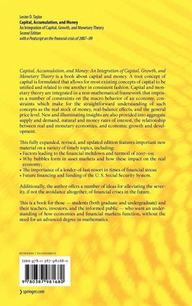Capital, Accumulation, and Money: An Integration of Capital, Growth, and MonetaryTheory is a book about capital and money. A root concept of capital is formulated that allows for most existing concepts of capital to be unified and related to one another in consistent fashion. Capital and monetary theory are integrated in a non-mathematical framework that imposes a number of constraints on the macro behavior of an economy, constraints which make for the straightforward understanding of such concepts as the real stock of money, real-balance effects, and the general price level. New and illuminating insights are also provided into aggregate supply and demand, natural and money rates of interest, the relationship between real and monetary economies, and economic growth and development.This fully expanded, revised, and updated edition features important new material on a variety of timely topics, including:_ Factors leading to the financial meltdown and turmoil of 2007-09;_ Why bubbles form in asset markets and how these impact on the real economy;_ The importance of a lender-of-last-resort in times of financial stress;_ Future financing and funding of the U. S. Social Security System.Additionally, the author offers a number of ideas for alleviating the severity, if not the avoidance altogether, of financial crises in the future. This is a book for those -- students (both graduate and undergraduate) and their teachers, investors, and the informed public -- who want an understanding of how economies and financial markets function, without an advanced degree in mathematics.