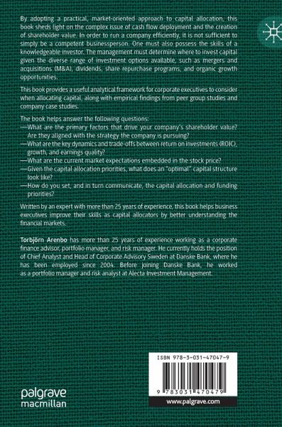 By adopting a practical, market-oriented approach to capital allocation, this book sheds light on the complex issue of cash flow deployment and the creation of shareholder value. In order to run a company efficiently, it is not sufficient to simply be a competent businessperson. One must also possess the skills of a knowledgeable investor. The management must determine where to invest capital given the diverse range of investment options available, such as mergers and acquisitions (M&A), dividends, share repurchase programs, and organic growth opportunities.