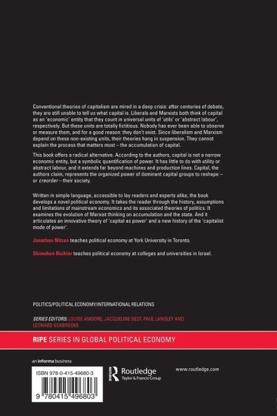 Written in simple language, accessible to lay readers and experts alike, the book develops a novel political economy. It takes the reader through the history, assumptions and limitations of mainstream economics and its associated theories of politics. It examines the evolution of Marxist thinking on accumulation and the state. And it articulates an innovative theory of 'capital as power' and a new history of the 'capitalist mode of power'.