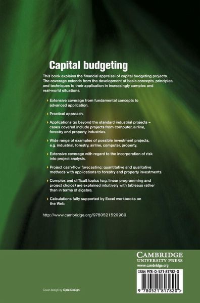 This book explains the financial appraisal of capital budgeting projects. The coverage extends from the development of basic concepts, principles and techniques to the application of them in increasingly complex and real-world situations. Identification and estimation (including forecasting) of cash flows, project appraisal formulae, and the application of net present value (NPV), internal rate of return (IRR) and other project evaluation criteria are illustrated with a variety of calculation examples. Risk analysis is extensively covered by the use of risk adjusted discount rate, certainty equivalent, sensitivity, simulation and Monte Carlo analysis. The NPV and IRR models are further applied to forestry, property and international investments. Resource constraints are introduced to the capital budgeting decisions with a variety of worked examples using linear programming technique. All calculations are extensively supported by Excel workbooks on the Web, and each chapter is well reviewed by end of chapter questions.
