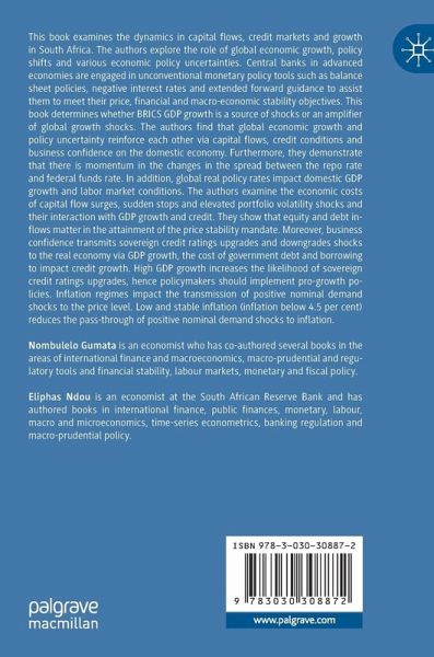 This book examines the dynamics in capital flows, credit markets and growth in South Africa. The authors explore the role of global economic growth, policy shifts and various economic policy uncertainties. Central banks in advanced economies are engaged in unconventional monetary policy tools such as balance sheet policies, negative interest rates and extended forward guidance to assist them to meet their price, financial and macro-economic stability objectives. This book determines whether BRICS GDP growth is a source of shocks or an amplifier of global growth shocks. The authors find that global economic growth and policy uncertainty reinforce each other via capital flows, credit conditions and business confidence on the domestic economy. Furthermore, they demonstrate that there is momentum in the changes in the spread between the repo rate and federal funds rate. In addition, global real policy rates impact domestic GDP growth and labor market conditions. The authors examine the economic costs of capital flow surges, sudden stops and elevated portfolio volatility shocks and their interaction with GDP growth and credit. They show that equity and debt inflows matter in the attainment of the price stability mandate. Moreover, business confidence transmits sovereign credit ratings upgrades and downgrades shocks to the real economy via GDP growth, the cost of government debt and borrowing to impact credit growth. High GDP growth increases the likelihood of sovereign credit ratings upgrades, hence policymakers should implement pro-growth policies. Inflation regimes impact the transmission of positive nominal demand shocks to the price level. Low and stable inflation (inflation below 4.5 per cent) reduces the pass-through of positive nominal demand shocks to inflation.