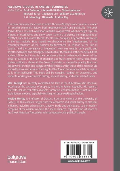 This book discusses the extent to which Thomas Piketty's work can offer a model for ancient economic history, both methodologically and politically. The book derives from a research workshop in Berlin in April 2018, which brought together a group of established and early career scholars to discuss the implications of Piketty's work and related themes for classical antiquity. Key questions reflected in the text include:d: How should we characterise the 'development' of the economy/economies of the classical Mediterranean, in relation to the role of 'capital' and the prevalence of inequality? How was wealth, both public and private, evaluated and managed? How much of the wealth of their society did the ancient 1% control - and is their dominance better understood in terms of the power of capital, or the role of predation and state capture? How far did certain ancient polities - above all the Greek city-states - succeed in placing limits on the power of the rich and integrating their interests with those of the masses? Did inequality increase between the height of the Roman Principate and late antiquity, as is often believed? This book will be valuable reading for academics and students working in economic history, ancient history, and other related fields.