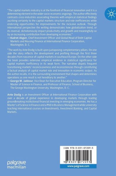 This book considers the theme of capital markets prowess and its link with surrounding economic dexterity. It presents the story on the back of dual intertwined cornerstone pillars: The initial agenda sets the global macroeconomic context and its interplay with financial markets and sub-segment capital markets. Then the book moves to the evolvement of the inherent capital markets, from nascence to present day, and through profiling of the current operating surroundings. The latter pillar performs empirical research built upon Eugene Fama's weak form efficiency theorem with statistical testing results further framing the comprehensive findings on five selected southeast European developing capital markets. Jointly the two parts present the first such well-documented capital markets set up complemented by wide-ranging empirical findings of inefficiency.
