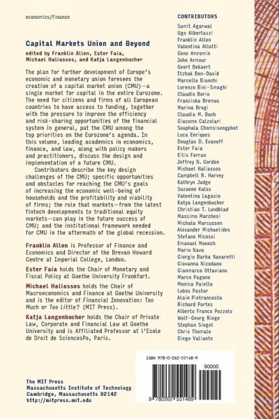 Experts from economics, finance, law, policy, and banking discuss the design and implementation of a future capital market union in Europe. The plan for further development of Europe's economic and monetary union foresees the creation of a capital market union (CMU)--a single market for capital in the entire Eurozone. The need for citizens and firms of all European countries to have access to funding, together with the pressure to improve the efficiency and risk-sharing opportunities of the financial system in general, put the CMU among the top priorities on the Eurozone's agenda. In this volume, leading academics in economics, finance, and law, along with policy makers and practitioners, discuss the design and implementation of a future CMU. Contributors describe the key design challenges of the CMU; specific opportunities and obstacles for reaching the CMU's goals of increasing the economic well-being of households and the profitability and viability of firms; the role that markets--from the latest fintech developments to traditional equity markets--can play in the future success of CMU; and the institutional framework needed for CMU in the aftermath of the global recession. Contributors Sumit Agarwal, Franklin Allen, Valentina Allotti, Gene Amromin, John Armour, Geert Bekaert, Itzhak Ben-David, Marcello Bianchi, Lorenzo Bini-Smaghi, Claudio Borio, Franziska Bremus, Marina Brogi, Claudia M. Buch, Giacomo Calzolari, Souphala Chomsisengphet, Luca Enriques, Douglas D. Evanoff, Ester Faia, Eilis Ferran, Jeffrey N. Gordon, Michael Haliassos, Campbell R. Harvey, Kathryn Judge, Suzanne Kalss, Valentina Lagasio, Katya Langenbucher, Christian T. Lundblad, Massimo Marchesi, Alexander Michaelides, Stefano Micossi, Emanuel Moench, Mario Nava, Giorgio Barba Navaretti, Giovanna Nicodano, Gianmarco Ottaviano, Marco Pagano, Monica Paiella, Lubos Pastor, Alain Pietrancosta, Richard Portes, Alberto Franco Pozzolo, Stephan Siegel, Wolfe-Georg Ringe, Diego Valiante