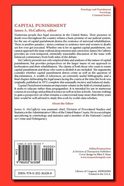Numerous people face legal execution in the United States. Their presence in death rows throughout the country refutes a basic premise of our judicial system, for the use of capital punishment denies the existence of universal rehabilitation. There is another paradox-juries continue to sentence men and women to death; yet few ever get executed. Whether one is for or against capital punishment, one cannot approach the issue without deep emotion and conviction. James McCafferty provides an even-tempered, eminently reasonable discussion of the issue with balanced commentary from both sides of the debate. McCafferty presents not only empirical data and analyses of the nature of capital punishment, but provides perspectives on the larger issues of our approach to lawbreakers and their rehabilitation. The claims of both those who want to retain capital punishment and those who want to abolish it are included. The arguments consider whether capital punishment deters crime as well as the question of discrimination. A wealth of references, an extremely useful bibliography, and a final chapter delineating the legal issues facing the courts at the time the book was originally published in 1972 complete this unusually incisive and balanced study. Capital Punishment remains an important volume in the field of criminal justice. It seeks to educate rather than propagandize. It is intended for use in numerous courses in sociology and political science as well as in law schools. Anyone wishing to gain a perspective on what remains a controversial issue more than thirty years later would be well advised to study this work by world-class scholars.