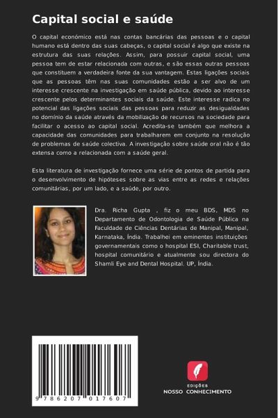 O capital económico está nas contas bancárias das pessoas e o capital humano está dentro das suas cabeças, o capital social é algo que existe na estrutura das suas relações. Assim, para possuir capital social, uma pessoa tem de estar relacionada com outras, e são essas outras pessoas que constituem a verdadeira fonte da sua vantagem. Estas ligações sociais que as pessoas têm nas suas comunidades estão a ser alvo de um interesse crescente na investigação em saúde pública, devido ao interesse crescente pelos determinantes sociais da saúde. Este interesse radica no potencial das ligações sociais das pessoas para reduzir as desigualdades no domínio da saúde através da mobilização de recursos na sociedade para facilitar o acesso ao capital social. Acredita-se também que melhora a capacidade das comunidades para trabalharem em conjunto na resolução de problemas de saúde colectiva. A investigação sobre saúde oral não é tão extensa como a relacionada com a saúde geral.Esta literatura de investigação fornece uma série de pontos de partida para o desenvolvimento de hipóteses sobre as vias entre as redes e relações comunitárias, por um lado, e a saúde, por outro.