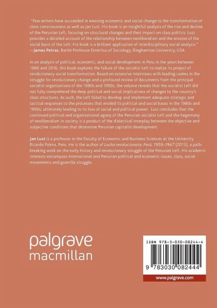 In an analysis of political, economic, and social development in Peru in the years between 1980 and 2016, this book explores the failure of the socialist Left to realize its project of revolutionary social transformation. Based on extensive interviews with leading cadres in the struggle for revolutionary change and a profound review of documents from the principal socialist organizations of the 1980s and 1990s, the volume reveals that the socialist Left did not fully comprehend the deep political and social implications of changes to the country's class structures. As such, the Left failed to develop and implement adequate strategic and tactical responses to the processes that eroded its political and social bases in the 1980s and 1990s, ultimately leading to its loss of social and political power. Lust concludes that the continued political and organizational agony of the Peruvian socialist Left and the hegemony of neoliberalism in society is a product of the dialectical interplay between the objective and subjective conditions that determine Peruvian capitalist development.