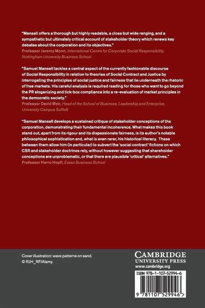 In whose interests should a corporation be run? Over the last thirty years the field of 'stakeholder theory' has proposed a distinctive answer: a corporation should be run in the interests of all its primary stakeholders - including employees, customers, suppliers and financiers - without contradicting the ethical principles on which capitalism stands. This book offers a critique of this central claim. It argues that by applying the political concept of a 'social contract' to the corporation, stakeholder theory in fact undermines the principles on which a market economy is based. The argument builds upon an extensive review of the stakeholder literature and an analysis of its philosophical foundations, particularly concerning the social contract tradition of John Rawls and his predecessors. The book concludes by offering a qualified version of Milton Friedman's shareholder theory as a more justifiable account of the purpose of a corporation.