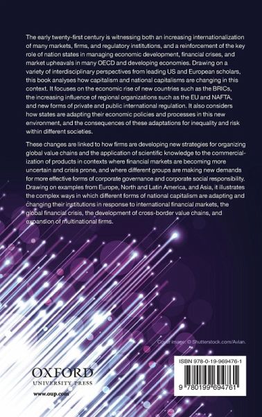 The early twenty-first century is witnessing both an increasing internationalization of many markets, firms, and regulatory institutions, and a reinforcement of the key role of nation states in managing economic development, financial crises, and market upheavals in many OECD and developing economies. Drawing on a variety of interdisciplinary perspectives from leading US and European scholars, this book analyses how capitalism and national capitalisms are changing in this context. It focuses on the economic rise of new countries such as the BRICs, the increasing influence of regional organizations such as the EU and NAFTA, and new forms of private and public international regulation. It also considers how states are adapting their economic policies and processes in this new environment, and the consequences of these adaptations for inequality and risk within different societies. These changes are linked to how firms are developing new strategies for organizing global value chains and the application of scientific knowledge to the commercialization of products in contexts where financial markets are becoming more uncertain and crisis prone, and where different groups are making new demands for more effective forms of corporate governance and corporate social responsibility. Drawing on examples from Europe, North and Latin America, and Asia, it illustrates the complex ways in which different forms of national capitalism are adapting and changing their institutions in response to international financial markets, the global financial crisis, the development of cross-border value chains, and expansion of multinational firms.