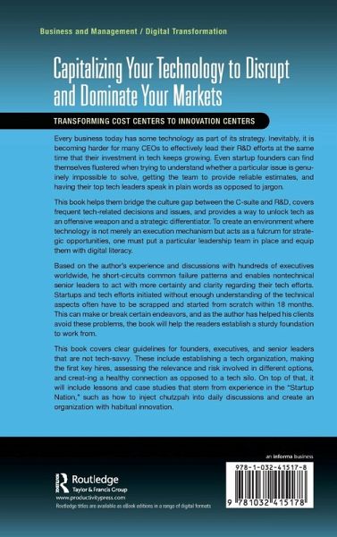 This book helps them bridge the culture gap between the C-suite and R&D, cover frequent tech-related decisions and issues, and provide a way to unlock tech as an offensive weapon and a strategic differentiator.