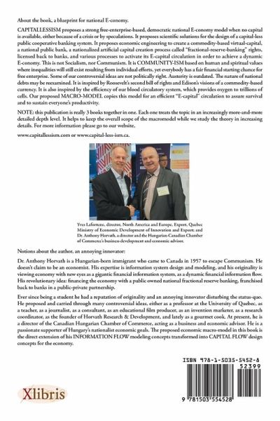 " Notions about the author, an annoying innovator: Dr. Anthony Horvath is a Hungarian-born immigrant who came to Canada in 1957 to escape Communism. He doesn’t claim to be an economist. His expertise is information system design and modeling, and his originality is viewing economy with new eyes as a gigantic financial information system, as a dynamic financial information flow. His revolutionary idea: financing the economy with a novel PUBLIC OWNED NATIONAL FRACTIONAL RESERVE BANKING, franchised back to banks in a public-private partnership. Ever since being a student he had a reputation of originality and an annoying innovator disturbing the status-quo. He proposed and carried through many controversial ideas, either as a professor at the University of Quebec, as a teacher, as a journalist, as a consultant, as an educational film producer, as an invention marketer, as a research coordinator, as the founder of Horvath Research & Development, and lately as a gourmet cook. At present, he is a director of the Canadian Hungarian Chamber of Commerce, acting as a business and economic advisor. He is a passionate supporter of Hungary’s nationalist economic goals. The proposed economic macro-model in this book is the direct extension of his INFORMATION FLOW modeling concepts transformed into CAPITAL FLOW design concepts for the economy. Yves Lafortune, director, North America and Europe, Export, Quebec Ministry of Economic Development of Innovation and Export; and Dr. Anthony Horvath, a director and the Hungarian-Canadian Chamber of Commerce’s business development and economic advisor."