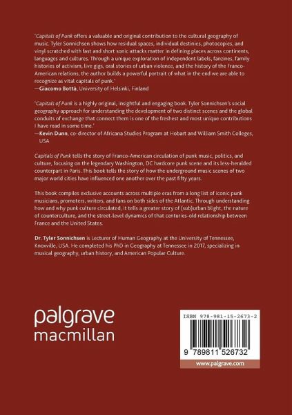 Capitals of Punk tells the story of Franco-American circulation of punk music, politics, and culture, focusing on the legendary Washington, DC hardcore punk scene and its less-heralded counterpart in Paris. This book tells the story of how the underground music scenes of two major world cities have influenced one another over the past fifty years. This book compiles exclusive accounts across multiple eras from a long list of iconic punk musicians, promoters, writers, and fans on both sides of the Atlantic. Through understanding how and why punk culture circulated, it tells a greater story of (sub)urban blight, the nature of counterculture, and the street-level dynamics of that centuries-old relationship between France and the United States.