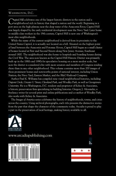 Capitol Hill celebrates one of the largest historic districts in the nation and a neighborhood rich in history that shaped a nation and the world. Beginning as a port area on the high plateau near the deep water of the Anacostia River, Capitol Hill was largely shaped by the early residential development near the Navy Yard. Later home to middle-class workers in the 19th century, Capitol Hill is now one of Washington's most elite neighborhoods. While the name of the current neighborhood is derived from its proximity to the United States Capitol, it is actually not located on a hill. Situated on the highest point of land between the Anacostia and Potomac Rivers, Capitol Hill began as a small cluster of homes located at First and Second Streets along New Jersey Avenue, Southeast around 1800. The neighborhood was also home to hospitals and boarding houses during the Civil War. The area now known as the Capitol Hill Historic District was primarily built up in the 1880s and 1890s for speculative housing on a more modest scale, but now the district is considered elite with more senators and members of Congress residing there than in any other neighborhood. This volume contains more than 200 images of these prominent homes and noteworthy points of national interest, including Union Station, the Navy Yard, Eastern Market, and the B&O Railroad Company.