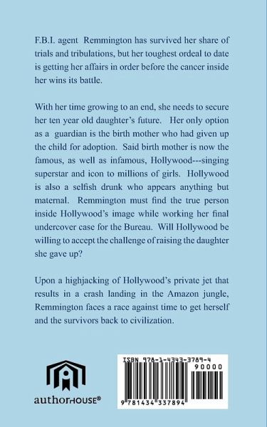 F.B.I. agent Remmington has survived her share of trials and tribulations, but her toughest ordeal to date is getting her affairs in order before the cancer inside her wins its battle. With her time growing to an end, she needs to secure her ten year old daughter's future. Her only option as a guardian is the birth mother who had given up the child for adoption. Said birth mother is now the famous, as well as infamous, Hollywood---singing superstar and icon to millions of girls. Hollywood is also a selfish drunk who appears anything but maternal. Remmington must find the true person inside Hollywood's image while working her final undercover case for the Bureau. Will Hollywood be willing to accept the challenge of raising the daughter she gave up? Upon a highjacking of Hollywood's private jet that results in a crash landing in the Amazon jungle, Remmington faces a race against time to get herself and the survivors back to civilization.