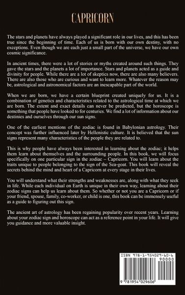Discover the secrets of the Capricorn Zodiac sign and harness your full potential! Does the world of astrology, especially the Zodiac, fascinate you? Do you ever wonder about your purpose in life? Do you believe you are part of a bigger picture, but you aren't sure how? Do you want to learn about your cosmic purpose? Do you want to learn more about the Zodiac sign, Capricorn? Are you eager to learn about how your Zodiac sign influences your life? If you answered yes to these questions, then this is the perfect book for you! No two individuals are truly alike, but all people born under the same zodiac sign share certain similarities. Your zodiac sign can provide great insight into your day-to-day living and all the talents and qualities you possess. Because we live in an unpredictable world, making sense of it becomes tricky occasionally. By delving into the world of astrology, you can seek answers to questions about yourself and life in general. From your attitude towards life to your goals, dreams, and aspirations to all the choices you make about them, astrology plays an important role. This book is the ideal guide for anyone who wants to learn about the Zodiac sign Capricorn. With the information in this book, you can harness your inner strength and power to reach your goals. Stop wondering what you are supposed to do in life and learn more about what your zodiac says you should be doing. In this book, you will learn about:The symbols, elements, houses, planetary rulership, and myths associated with Capricorn. Defining traits, strengths, and weaknesses of Capricorn. Everything you need to know about the Capricorn-Aquarius and Sagittarius-Capricorn cusps. How to care for the Capricorn child in your life. The secrets of Capricorn and love. The ideal career choices for a Capricorn. Everything that a Capricorn needs in life, and much more! This is the perfect guide to learn everything about Capricorn. All the helpful insights, simple suggestions, and practical tips in this book can be used to harness the potential of your zodiac sign. So if you're interested in discovering the secret purpose of your life, then the first step is to grab your copy of this book today!