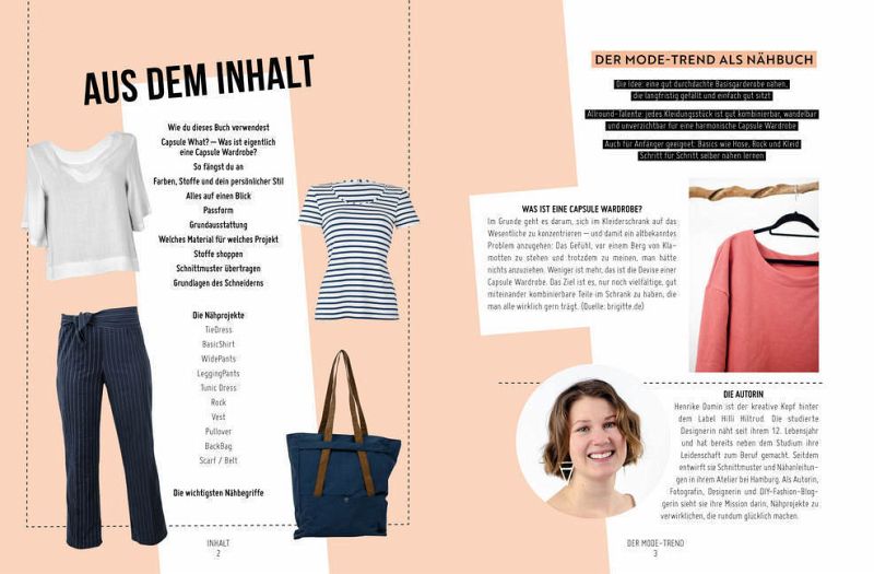 Minimalismus im KleiderschrankCapsule Wardrobe - die Gegenbewegung zur Fast Fashion: eine gut durchgedachte Basisgarderobe, die aus wenigen Stücken besteht, die sich gut miteinander kombinieren lassen. 10 Teile lassen sich nun schnell und einfach selbst nähen. Ob Rock, Shirt, Bluse, Hose oder Tasche - jedes Kleidungsstück ist gut kombinierbar, wandelbar und unverzichtbar für eine harmonische Capsule Wardrobe. Insgesamt lassen sich so 100 Outfits kombinieren - mal elegant, mal lässig, mal fürs Büro. Die Projekte werden alle Schritt für Schritt erklärt und sind auch für Nähanfänger geeignet.Größe 32-50, mit 4 Schnittmusterbogen
