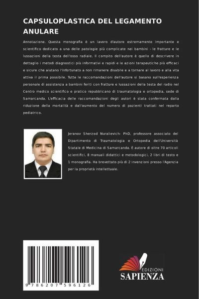 Annotazione. Questa monografia è un lavoro d'autore estremamente importante e scientifico dedicato a una delle patologie più complicate nei bambini - le fratture e le lussazioni della testa dell'osso radiale. Il compito dell'autore è quello di descrivere in dettaglio i metodi diagnostici più informativi e rapidi e le azioni terapeutiche più efficaci e sicure che aiutano l'infortunato a non rimanere disabile e a tornare al lavoro e alla vita attiva il prima possibile. Tutte le raccomandazioni dell'autore si basano sull'esperienza personale di assistenza a bambini feriti con fratture e lussazioni della testa del radio nel Centro medico scientifico e pratico repubblicano di traumatologia e ortopedia, sede di Samarcanda. L'efficacia delle raccomandazioni degli autori è stata confermata dalla riduzione della mortalità e dall'aumento del numero di pazienti trattati nel reparto pediatrico.