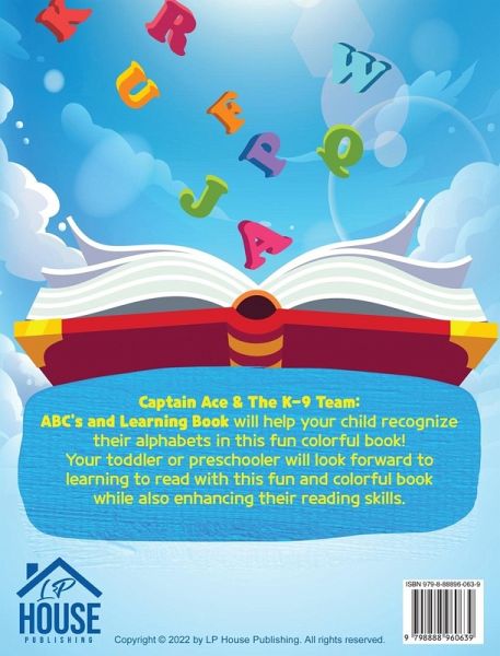 Captain Ace & The K-9 Team: ABC's and Learning Book will help your child recognize their alphabets in this fun colorful book! Your toddler or preschooler will look forward to learning to read with this fun and colorful book while also enhancing their reading skills.